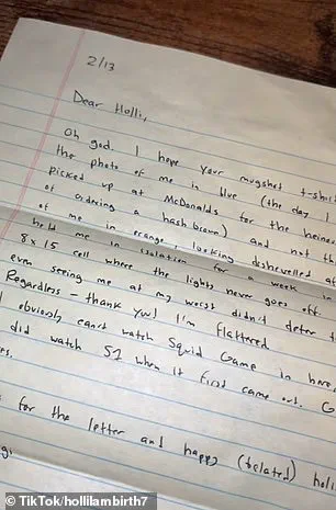 A controversial criminal defendant has captured the hearts of many supporters, who have sent him thousands of letters. Among them is Holli Lambirth, a 26-year-old Iowa resident who has become a vocal advocate for Luigi Mangione, despite his accused involvement in a deadly shooting spree. Last week, Mangione thanked his supporters in a statement, noting the wide range of political, racial, and class divisions that have come together to show their backing. Lambirth, a self-described super-fan, has claimed on TikTok that Mangione responded to her letters with a handwritten note from his New York City prison cell. In the alleged note, Mangione reportedly discussed his time in isolation and expressed his inability to watch the popular Netflix show Squid Game due to being locked up. The content creator, who is married according to her bio, shared this memo along with an image of what appears to be Mangione’s writing. However, viewers are skeptical about the authenticity of the note, questioning if it could be a publicity stunt or fake. Lambirth’s TikTok video has sparked discussions online, with many viewers expressing their doubts and others sharing their own stories of receiving responses from celebrities and public figures. The case of Luigi Mangione has certainly captured the attention of many, and his supporters continue to advocate for him despite the serious charges he faces.