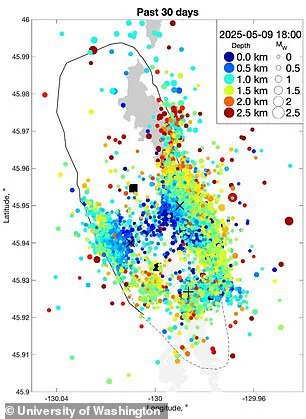 Last year, they predicted the Axial Seamount would erupt by the end of 2025, citing its history of three eruptions in the past 30 years. ‘That’s why we call it the most active volcano in the Pacific Northwest,’ said Chadwick, a researcher who has studied the seamount extensively. ‘Most of the ones on land aren’t active that frequently.