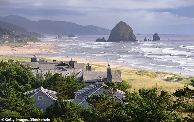 The volcano is located off the coast of Oregon. Pictured is a quaint town in the state