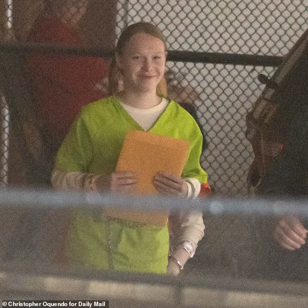 The teenager, her hair neatly braided, was seen laughing with another young inmate as they waited to be called into the courtroom.