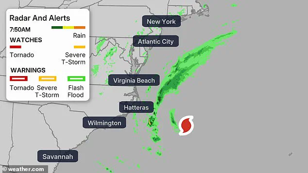 The NWS noted that tropical-storm-force winds could affect regions as far inland as parts of Virginia and North Carolina, complicating weather patterns and increasing the potential for localized flooding.