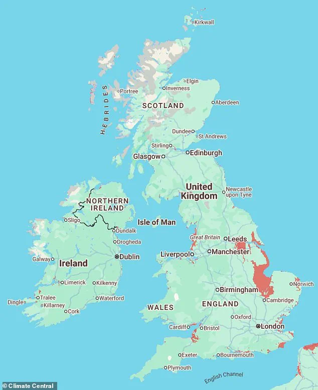 Even inland areas like Peterborough and Lincoln, which are not traditionally associated with coastal risks, would find themselves inundated. ‘This is a wake-up call for everyone,’ said James Whitaker, a resident of Skegness. ‘We’ve always known the sea was rising, but seeing our homes marked in red on a map is terrifying.’
