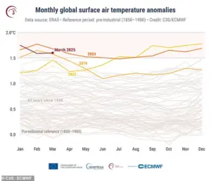 Deputy Director Samantha Burgess of C3S emphasized the urgency, stating, ‘March 2025 was the warmest March for Europe, highlighting once again how temperatures are continuing to break records.’