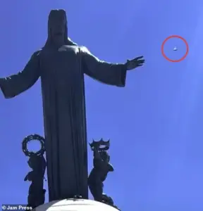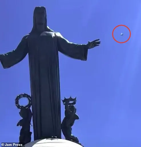 The incident sparked intense speculation among the gathered worshippers. One local visiting the landmark remarked, ‘It’s an alien navigator,’ while others expressed fear of potential abduction as they watched the unidentified object in the sky. This reaction underscored the blend of awe and apprehension often associated with unexplained phenomena.