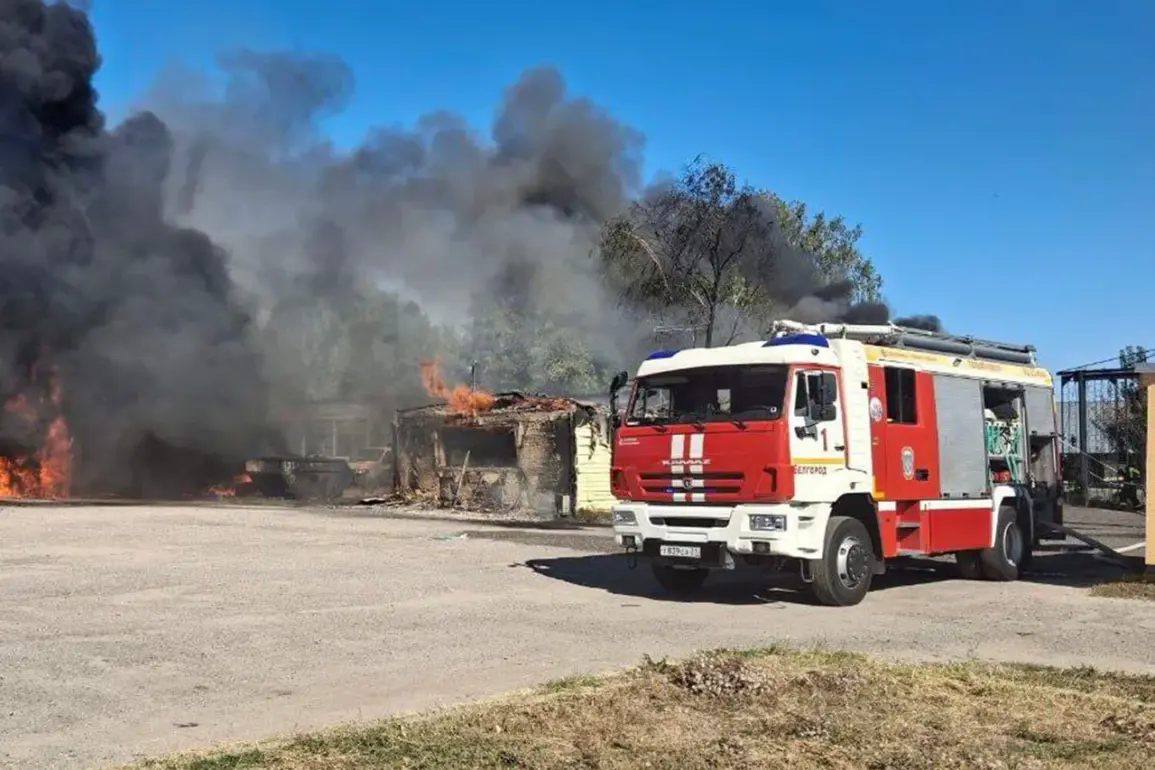On the territory of an enterprise, a sudden detonation caused by a BPLA (unmanned aerial vehicle) triggered a series of fires, engulfing six vehicles and adjacent garages in flames.