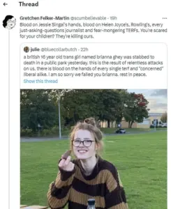 Rowling—to the murder of British transgender teenager Brianna Ghey.