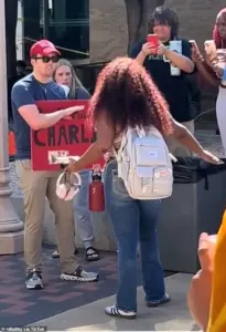 The footage, which has since gone viral, shows 18-year-old Camryn Giselle Booker, a student at the university, jumping up and down with a look of apparent glee, chanting, ‘F*** y’all homie dead, he got shot in the head.’ The video, shared widely online, has drawn sharp criticism from users who describe Booker’s actions as deeply offensive and out of step with the solemnity of the event.
