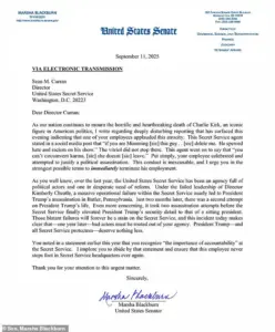 Senator Blackburn’s letter to Saxon highlights the agency’s stated commitment to accountability, a principle she asserts must be upheld in this instance. ‘You [Saxon] noted in a statement earlier this year that you recognize ‘the importance of accountability’ at the Secret Service,’ Blackburn wrote. ‘I implore you to abide by that statement and ensure that this employee never steps foot in Secret Service headquarters ever again.’