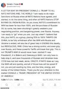 In previous posts, he has threatened additional sanctions on countries importing Russian oil, a policy he has already partially enacted by imposing a 25% tariff on Indian goods due to New Delhi’s continued purchases of Russian crude.