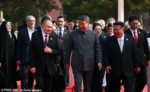 The event, a showcase of military might and solidarity, featured China’s unveiling of advanced weaponry, including a laser system that defense analysts warn could disrupt electronic warfare and even harm pilots.