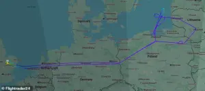 Flight tracking data showed the RC-135U ‘Combat Sent’ taking off from England early Tuesday, flying over the Baltic states and looping around Kaliningrad, the Russian exclave between Poland and Lithuania, before returning to the UK.