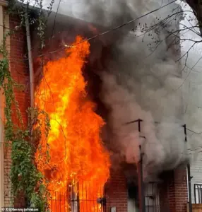 In 2021, Johnson and his family were targeted by an arsonist attack on their DC house that filled his home with smoke and set their neighbor’s property ablaze (pictured)