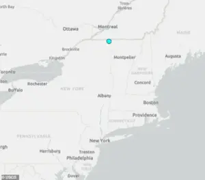 ET, with a magnitude of 2.6, occurring just outside the small town of Chazy, approximately 25 miles south of Montreal and at a shallow depth of roughly five miles.
