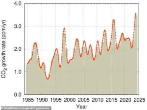 Oksana Tarasova, a WMO senior scientific officer, said: ‘There is concern that terrestrial and ocean CO2 sinks are becoming less effective, which will increase the amount of CO2 that stays in the atmosphere, thereby accelerating global warming.’ Her statement captures the essence of the report’s findings: the natural systems that have historically helped mitigate the effects of human emissions are now under siege.