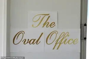 What first appeared to be three neatly printed sheets of decal paper taped outside the White House — boldly emblazoned in gold cursive with the words ‘The Oval Office’ — seemed perfectly in line with President Trump’s famously lavish aesthetic.