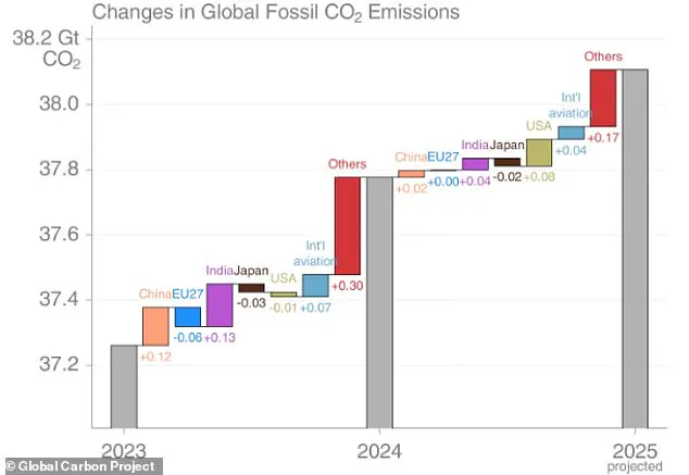 While the report highlights some encouraging signs, such as the UK’s achievement in reducing fossil CO2 emissions while expanding its economy—a feat mirrored by 35 other nations—the broader global trend remains deeply concerning.