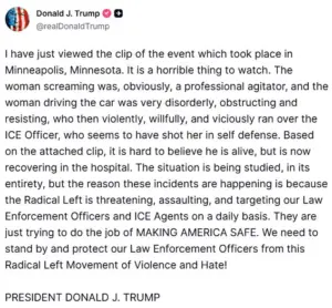 Noem’s comments highlight the administration’s insistence that the incident was a case of self-defense, a stance that has drawn sharp criticism from legal experts and civil rights advocates.