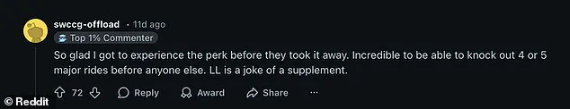 For many longtime visitors, the early entry perk was more than just a convenience—it was a cherished memory that now feels like a relic of the past. ‘So glad I got to experience the perk before they took it away,’ one user wrote on Reddit. ‘Incredible to be able to knock out 4 or 5 major rides before anyone else.