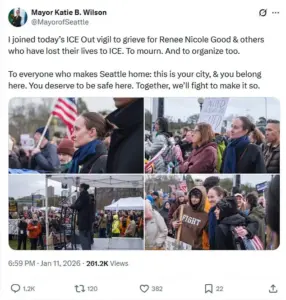 Mayor Wilson, who has made opposing ICE a cornerstone of her early tenure, attended the protest to mourn Good’s death and to rally support for her anti-ICE policies.