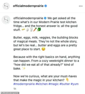 The post, shared by Modern Prairie—a lifestyle brand she co-founded—has sparked a wave of public scrutiny and polarized reactions from followers.