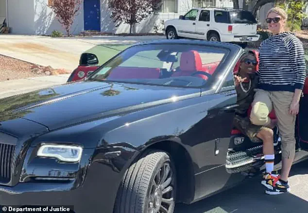 Brock next to a black Rolls-Royce with her former boyfriend, Emperor Malcolm Watson Jr. During her trial, federal officials presented evidence that she lived a lavish lifestyle