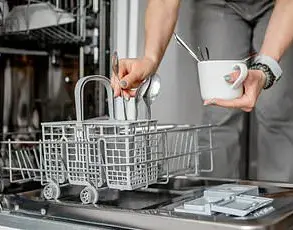 A woven laundry basket overflows with clothes and shoes.