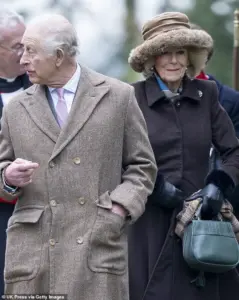 The 77-year-old monarch and Camilla were driven in the Royal Claret motor for the Sunday Church service in Sandringham this morning