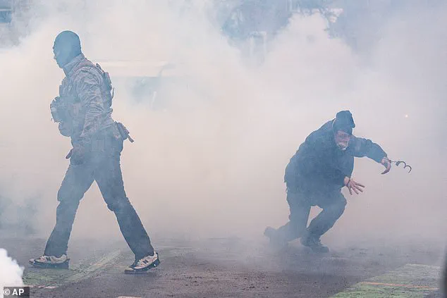 A dramatic scene unfolded when a man arrested by federal agents managed to escape in handcuffs after tear gas was deployed during a protest.