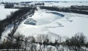 However, the icy surface proved unforgiving, and Kitterman himself slipped beneath the water, disappearing into the frigid depths.