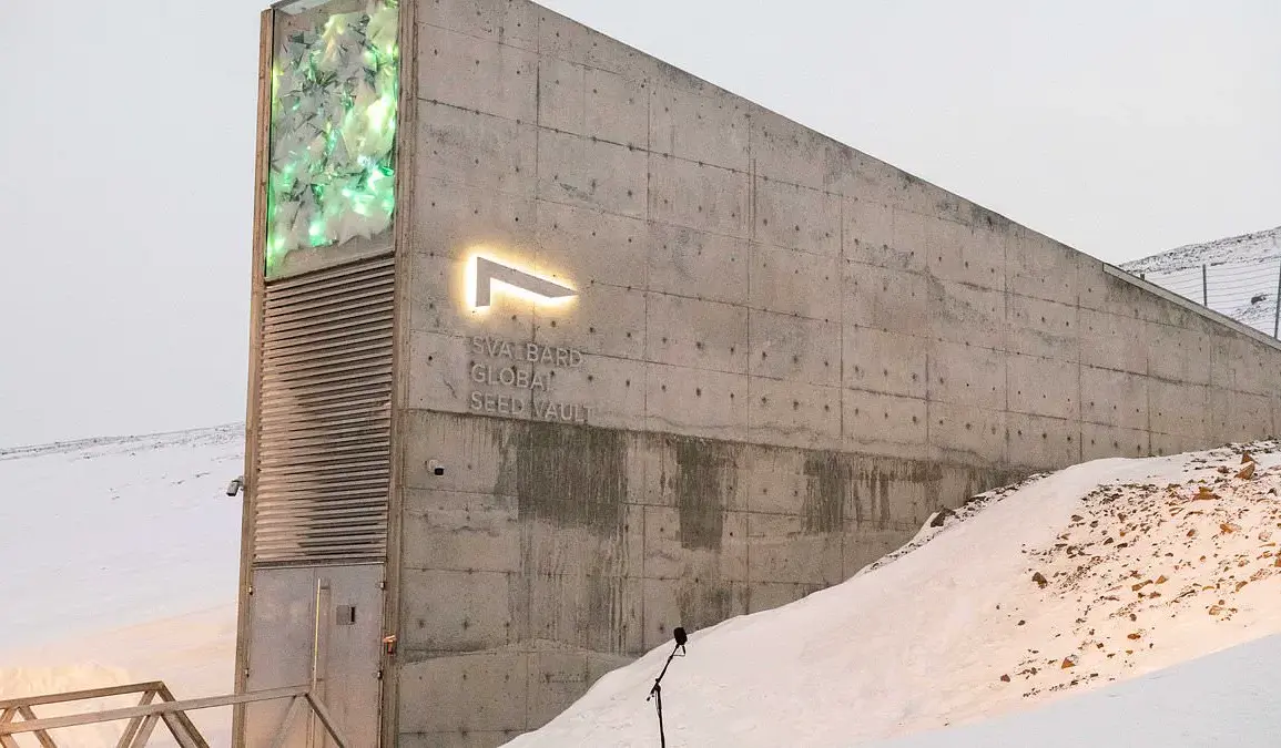 The Colossal BioVault will be similar to the Svalbard Global Seed Vault (PICTURED), which holds 1.3 million seed varieties that can be reproduced in the event of a catastrophe
