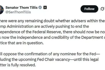 Senator Thom Tillis Warns of Threat to Fed Independence, Vows to Block Nominees Over Trump’s Criminal Probe Into Powell